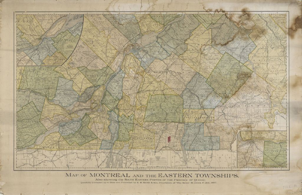 Map of Montreal and the Eastern Townships, also showing the South Eastern Portion of the Province of Quebec, carefully corrected up to date and published by E.R. Smith & Son...