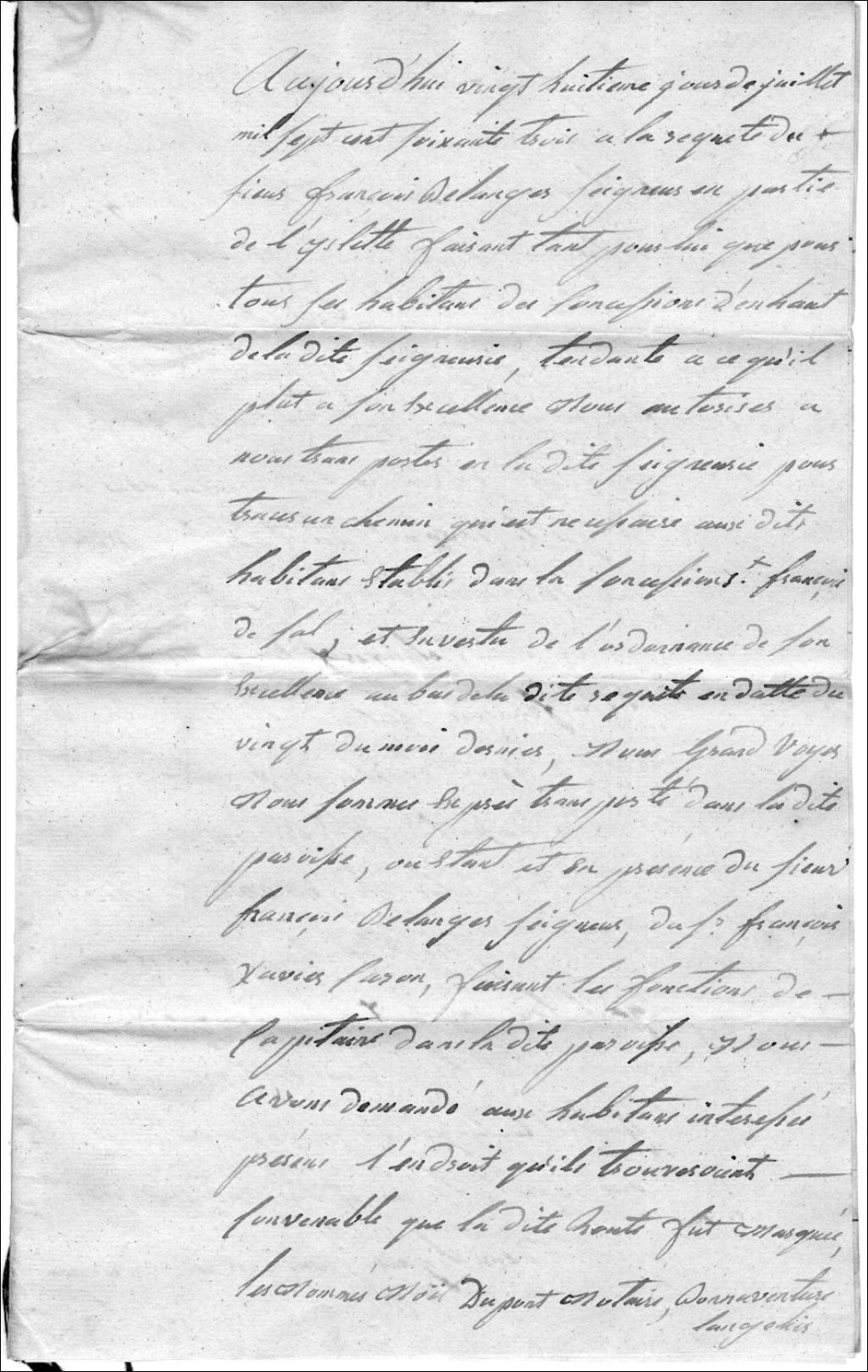 Procès verbal du 28 juillet 1763 concernant le tracé d'une route à la concession Saint-François à l'Islet