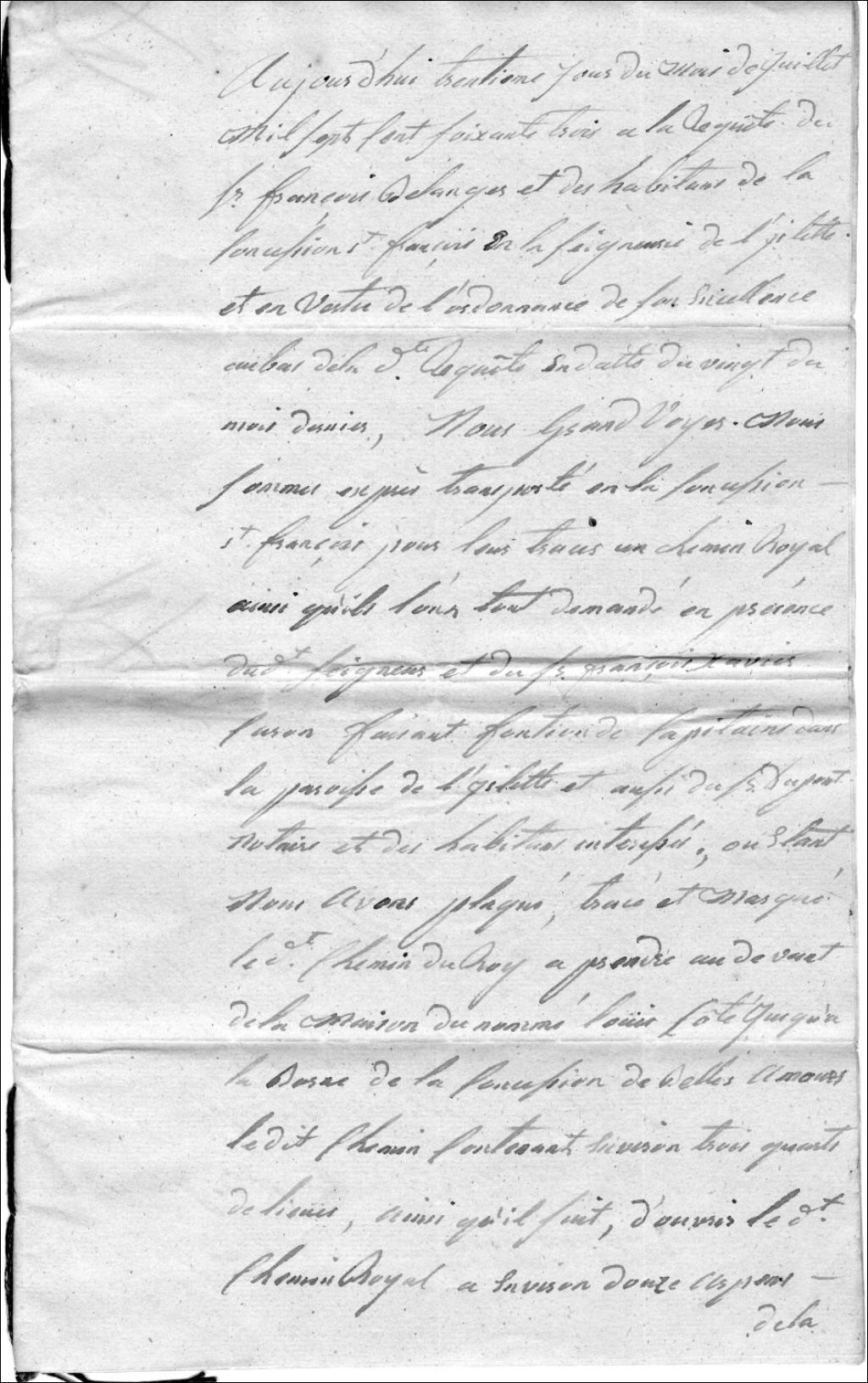 Procès verbal du 30 juillet 1763 concernant le chemin de front de la concession de Saint-François à l'Islet