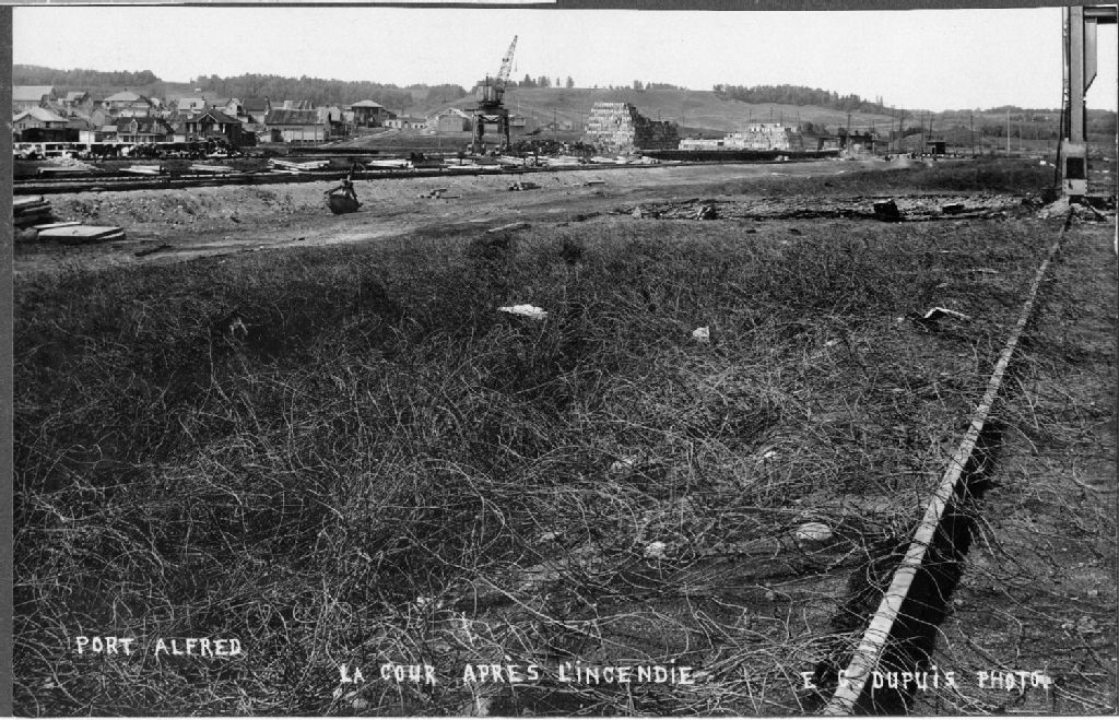 La cour de l'usine Consolidated paper corporation limited après l'incendie de 1933