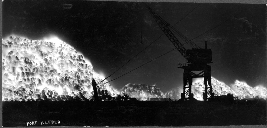 Consolidated paper corporation limited : pile de pulpes en feu - Ville de La Baie, 1933, Archives nationales à Saguenay, Fonds Vincent Dubuc, (02C,P60,S1,D3,P161), Dubuc, Vincent.