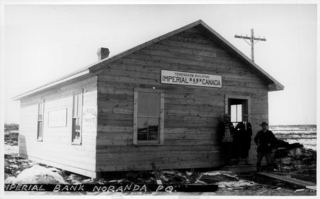 Vue de l'édifice temporaire de la Banque Impériale du Canada à Noranda