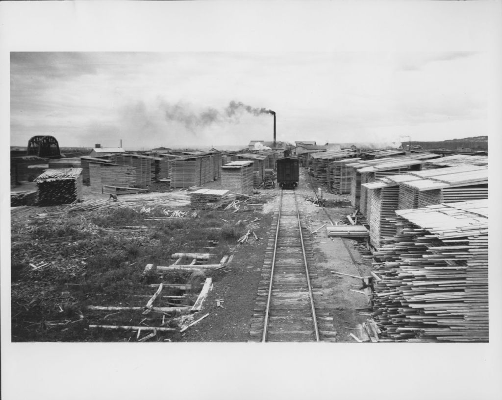 Le train dans la cour à bois de la scierie La Sarre