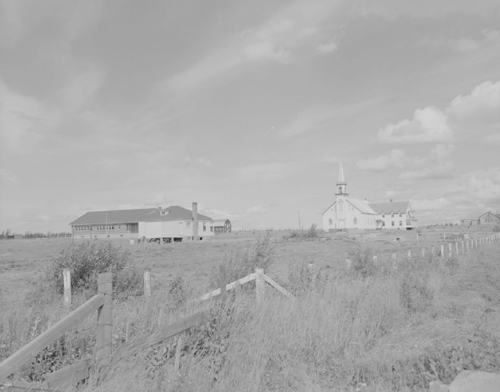 Une école et une église de la région de La Sarre