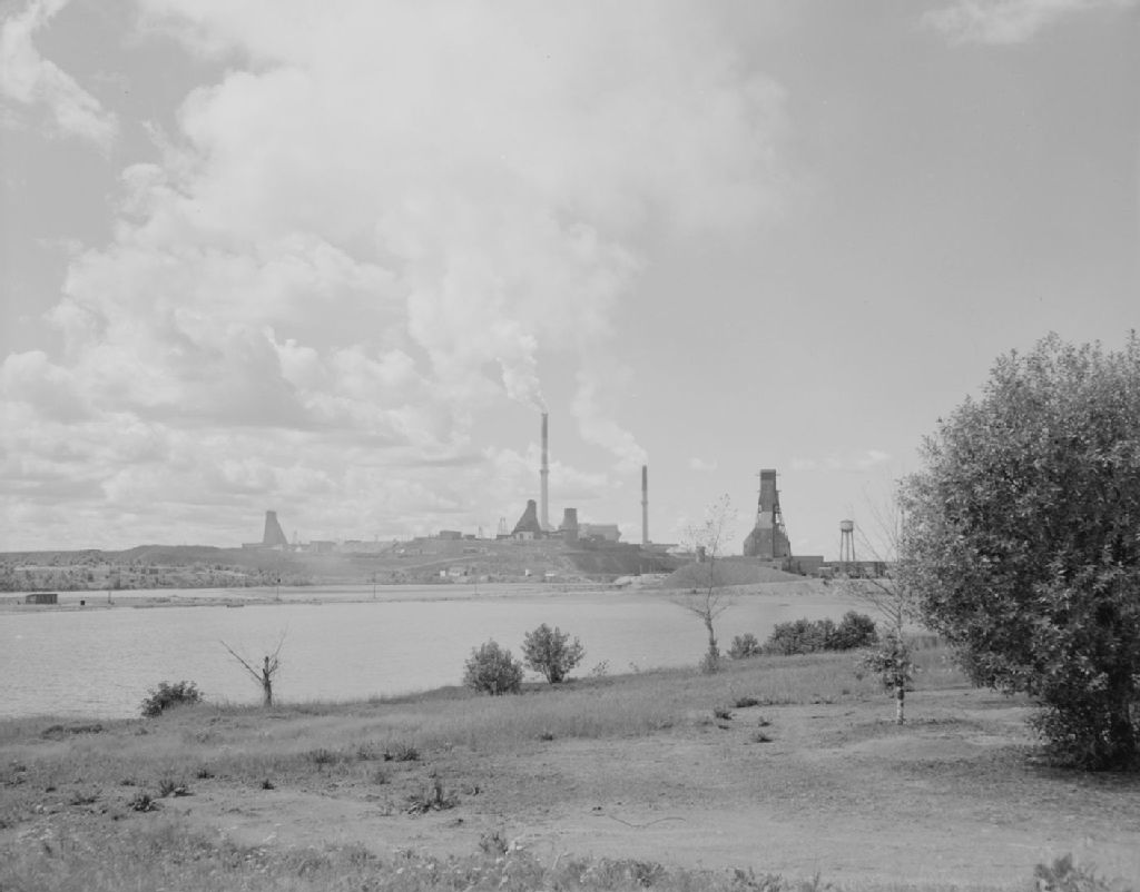 Mine Noranda vue du terrain de golf Noranda, 1952, Archives nationales à Rouyn-Noranda, Fonds Canadien National, (08Y,P213,P441), Canadien National.