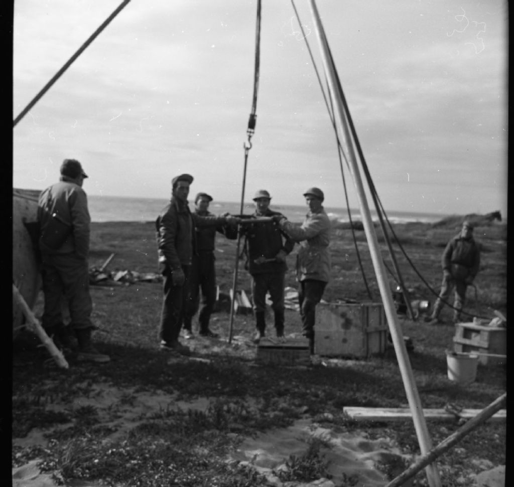 Prospection près de Rivière-à-la-Chaloupe, Octobre 1957, Archives nationales à Sept-Îles, Fonds Mitchell Campbell, (09N,P41,S9,D2,P1), Campbell, Mitchell, gérant Club de pêche Moisie, époque 1936-1980.