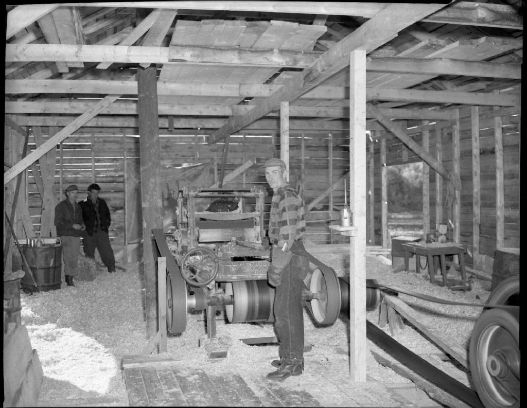 Cette pièce nous montre la scierie opérée par les frères Bond, Albert Windam et Walter. Le bois était coupé en haut de Rivière-à-la-Chaloupe et vendu à Rivière-au-Tonnerre