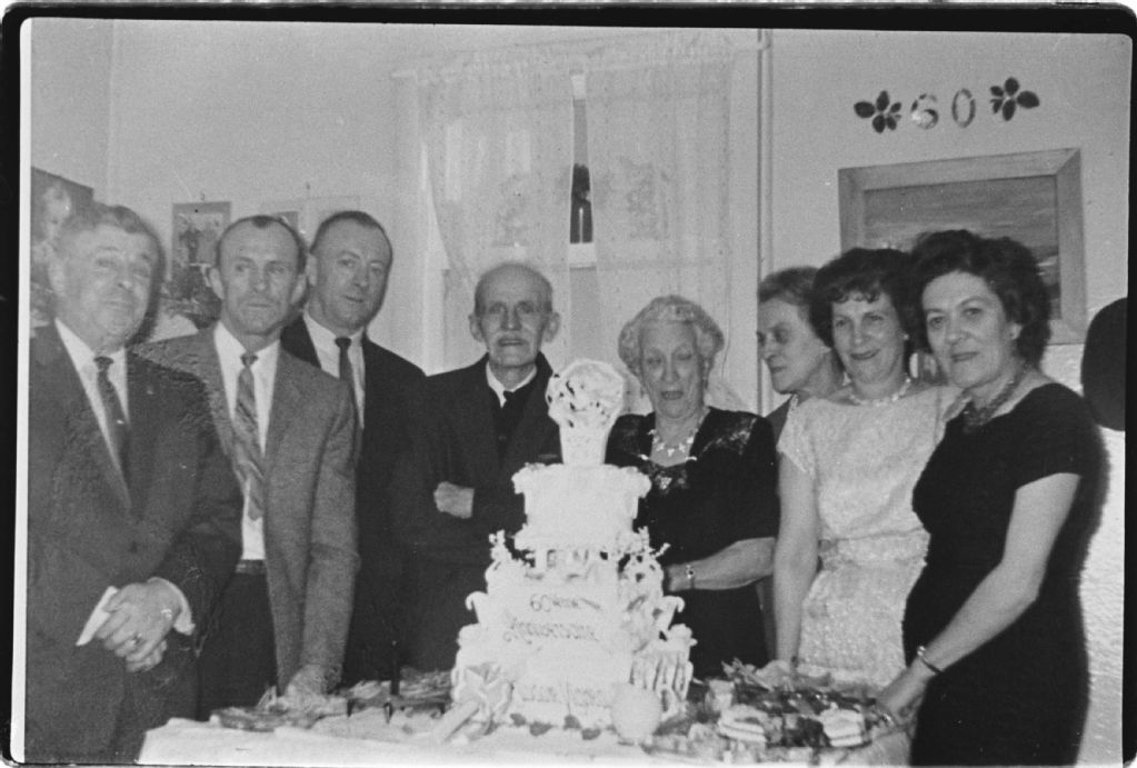 60ième anniversaire de mariage d'Héliodore Vigneault et Alphonsine Jean, Négatif reproduit en 1984 (original créé en 1965), Archives nationales à Sept-Îles, Collection Société historique du Golfe, (09N,P6,S3,D4,P468), Société historique du Golfe.