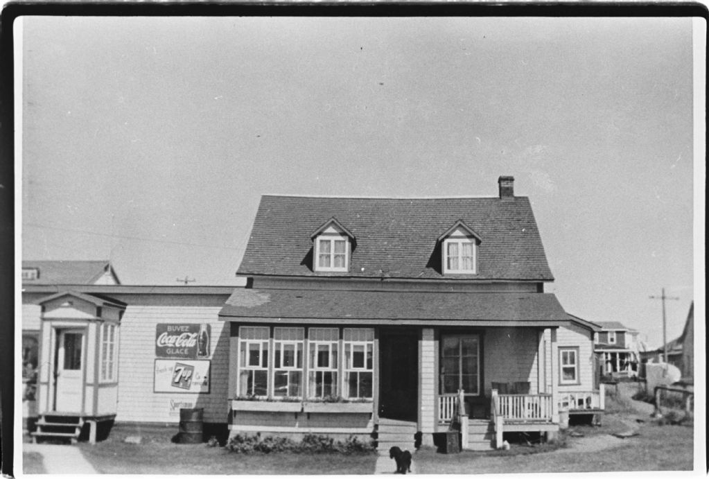 Maison d'Elzéar Lévesque, Négatif reproduit en 1984 (original créé en 1959), Archives nationales à Sept-Îles, Collection Société historique du Golfe, (09N,P6,S3,D4,P492), Société historique du Golfe.