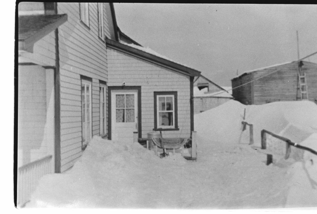 Maison d'Elzéar Lévesque, Négatif reproduit en 1984 (original créé vers 1940), Archives nationales à Sept-Îles, Collection Société historique du Golfe, (09N,P6,S3,D4,P495), Société historique du Golfe.