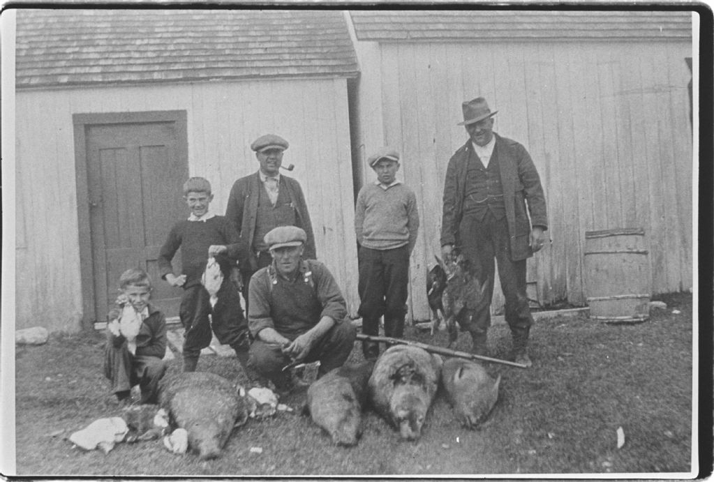 Chasse aux phoques à Moisie, Négatif reproduit en 1984 (original créé vers 1930), Archives nationales à Sept-Îles, Collection Société historique du Golfe, (09N,P6,S3,D4,P615), Société historique du Golfe.