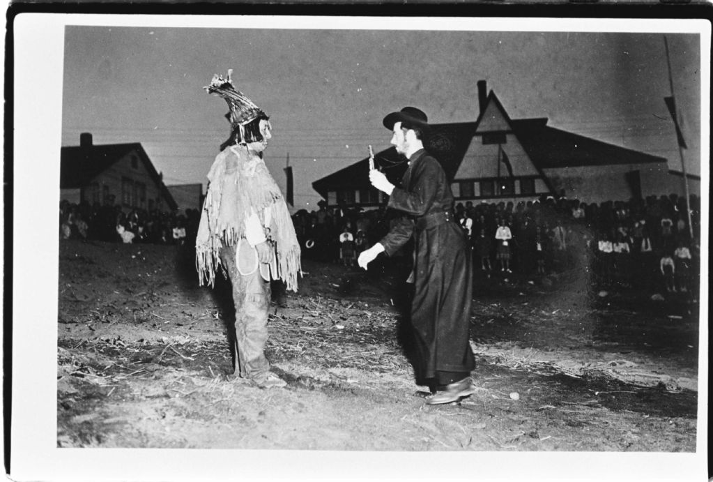 Personnification du père Jean De Quen et d'un chef innu lors des fêtes du tricentenaire de Sept-Îles