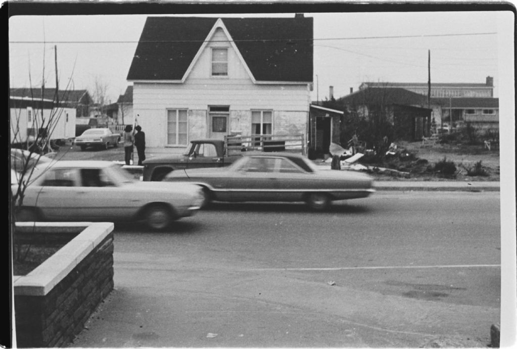 Maison de Louis Chambers, rue Brochu, Sept-Îles, Négatif reproduit en 1984 (original créé vers 1970), Archives nationales à Sept-Îles, Collection Société historique du Golfe, (09N,P6,S3,D4,P800), Société historique du Golfe.