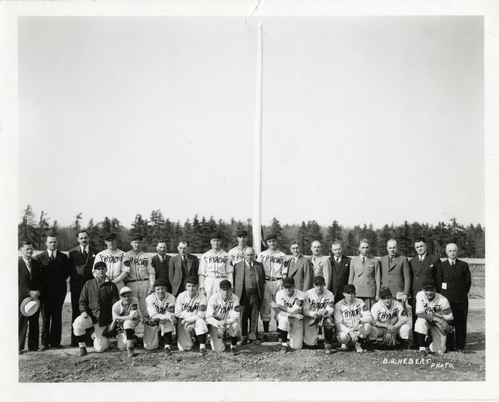 T.-D. Bouchard avec les joueurs du Club de baseball de St-Hyacinthe