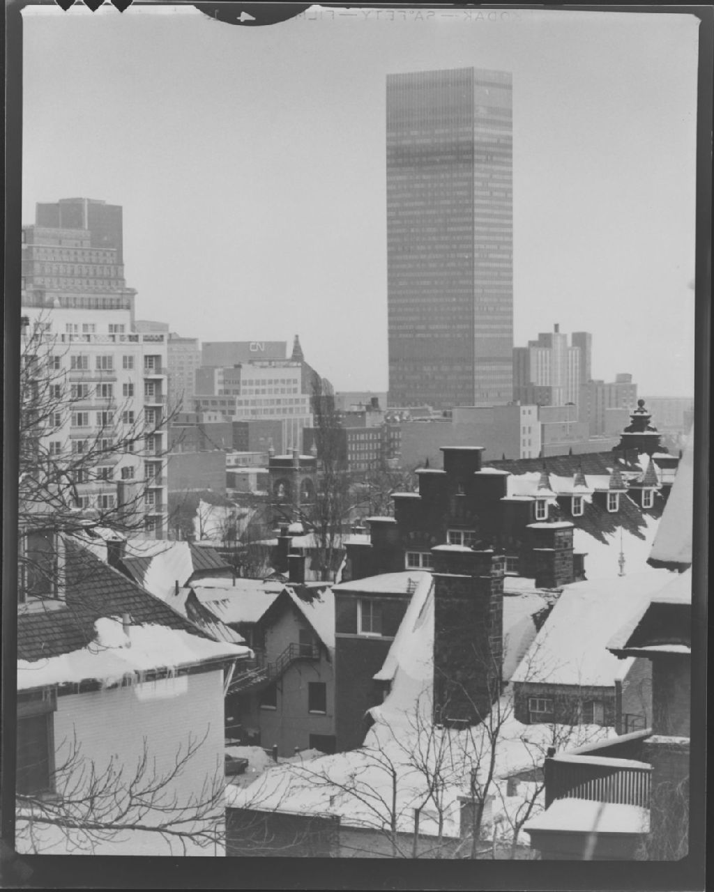 Vue de Montréal par dessus les toîts de l'avenue des Pins, pour la ville de Montréal, [Vers 1965], Archives nationales à Montréal, Fonds Armour Landry, (06M,P97,S1,D14250-14250), Armour Landry.