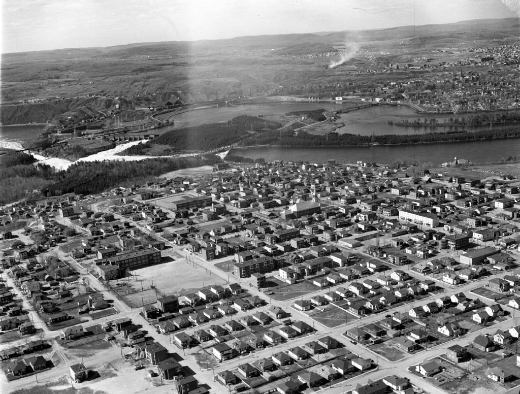 - Ce dossier présente la ville, les ponts et les barrages sur la rivière Saint-Maurice, la forêt environnante, des vues de la centrale de l¿aluminerie Alcan et de la centrale hydroélectrique Shawinigan 2