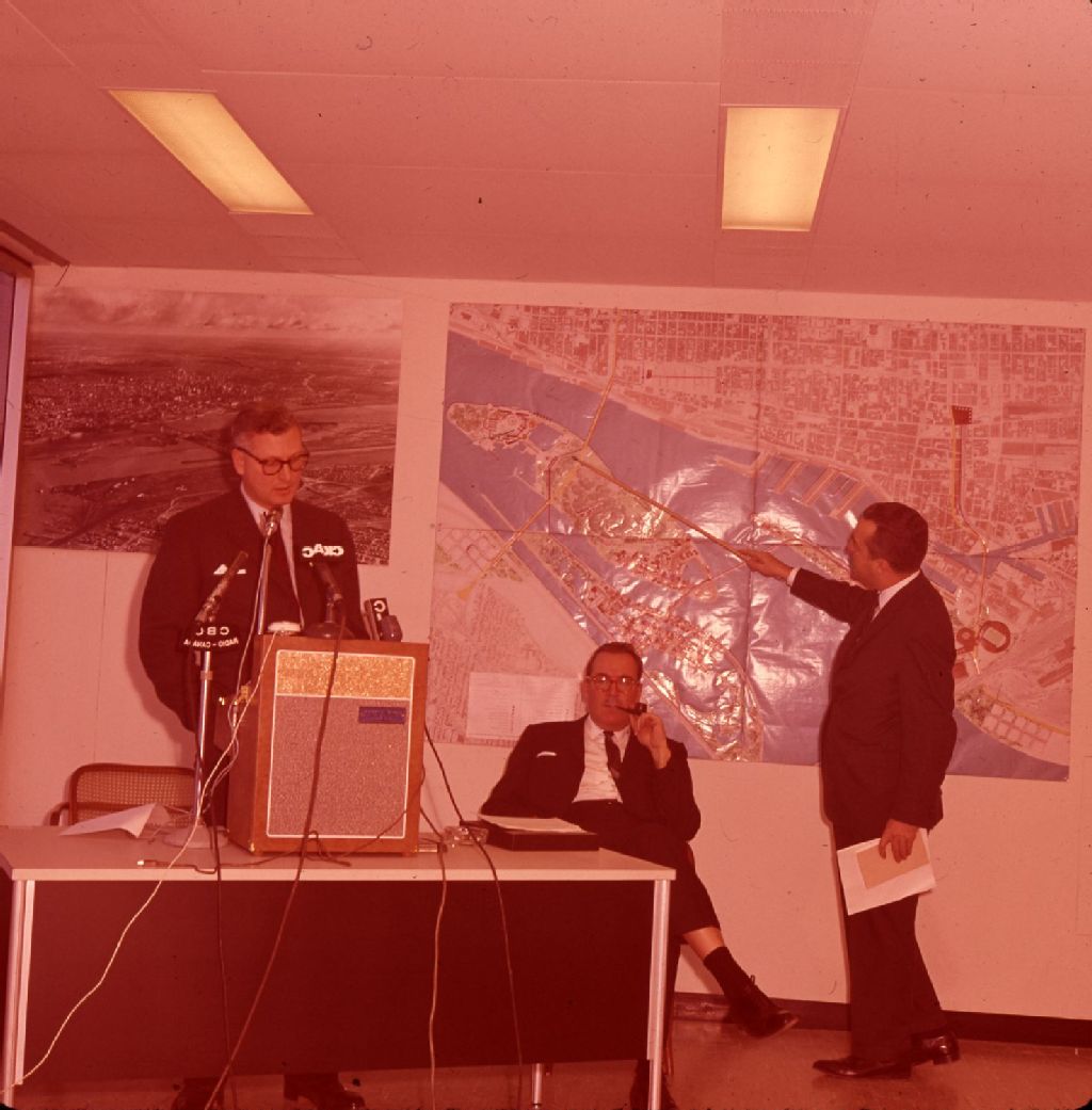- Sigle de l'Expo 67 et présentation du site en conférence de presse