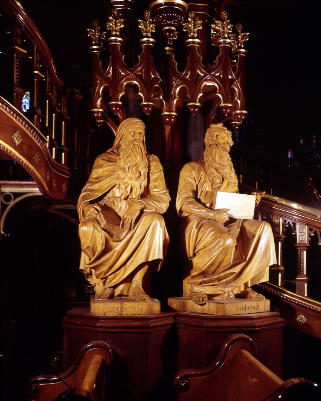 Statues de Ezéchiel et de Jérémie à l'intérieur de l'Église Notre-Dame dans le vieux-Montréal