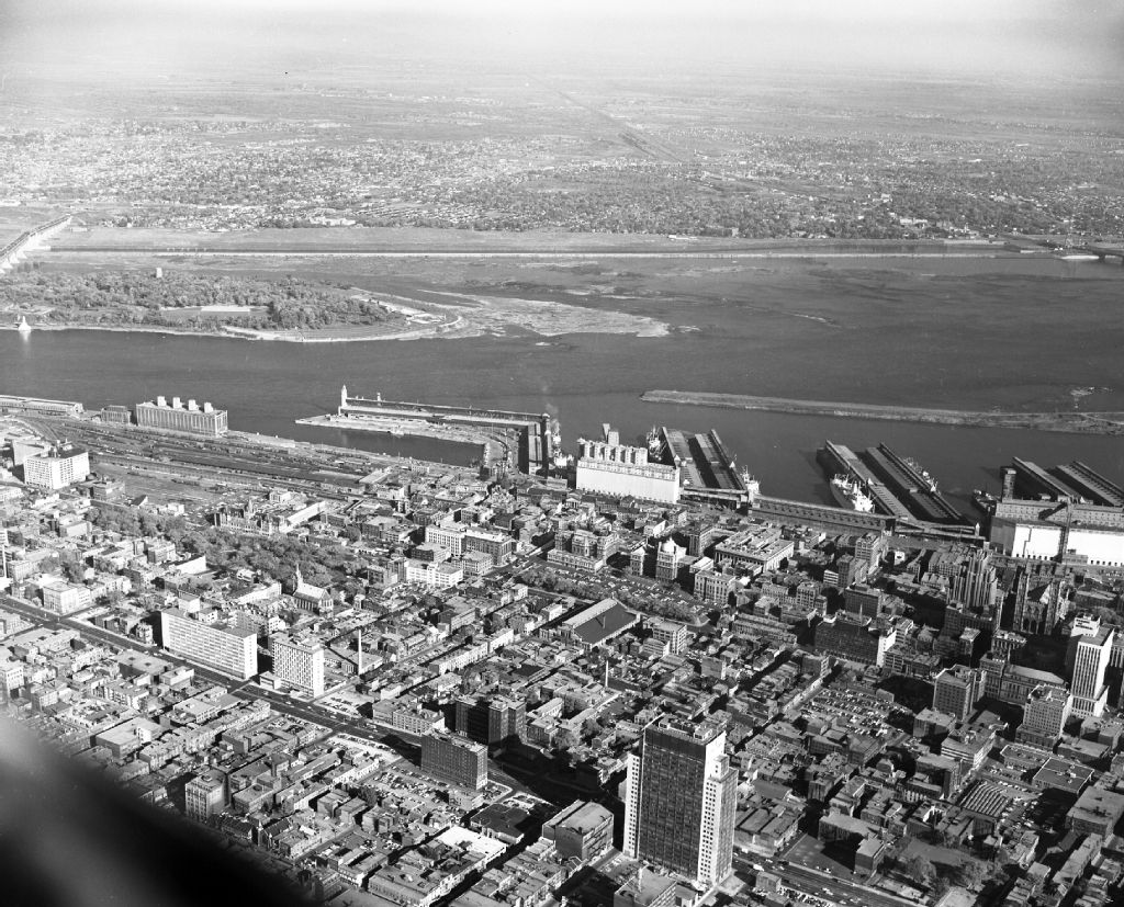 Vue aérienne de Montréal, du port et de l'Ile Sainte-Hélène