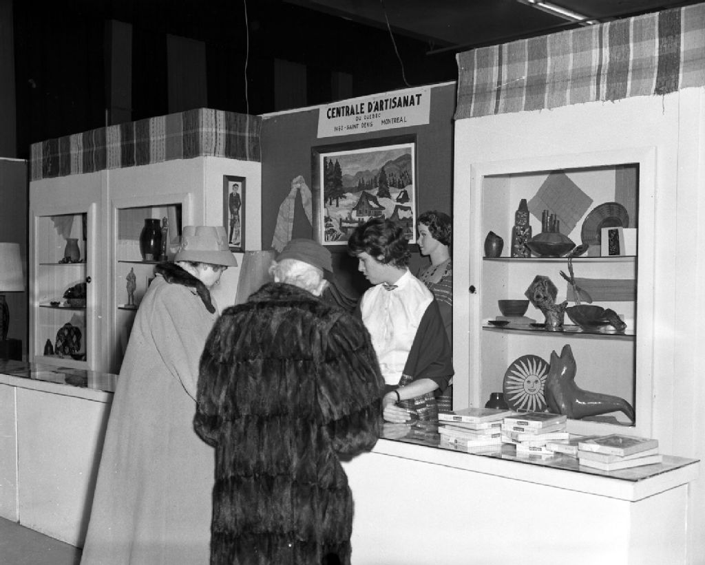 - Vues de différents kiosques d'exposants lors d'une exposition d'artisanat du Québec