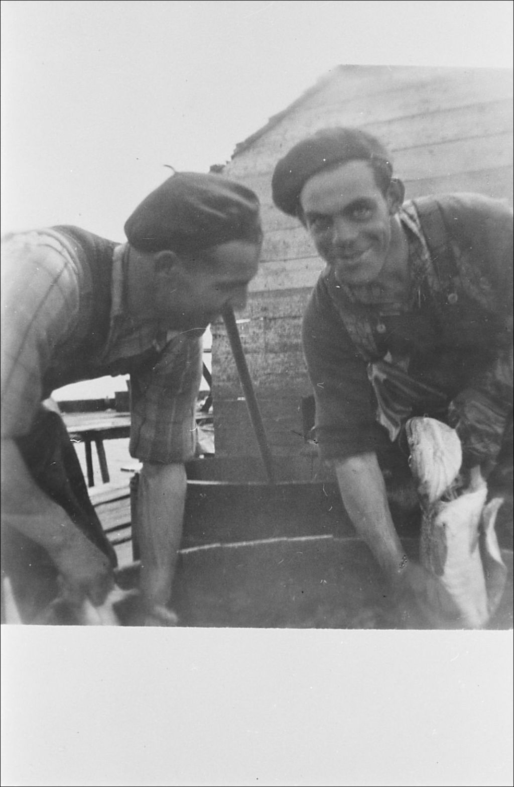 Ovila et Émédé Beaudoin revenant de la pêche, 1954, Archives nationales à Sept-Îles, Fonds Groupe d'action et de développement économique et culturel de la Basse Côte-Nord, (09N,P12,S2,P175), Groupe d'action et de développement économique et culturel Basse-Côte-Nord.