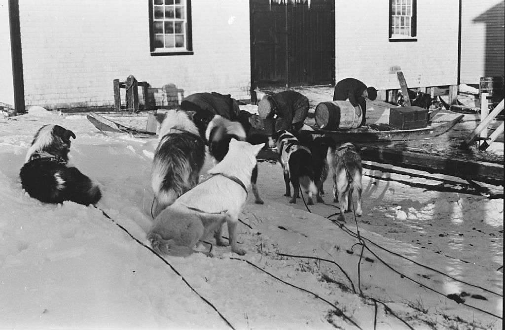 Chiens de traîneaux amenant le courrier et autres articles pour le magasin de Malcolm Fequet