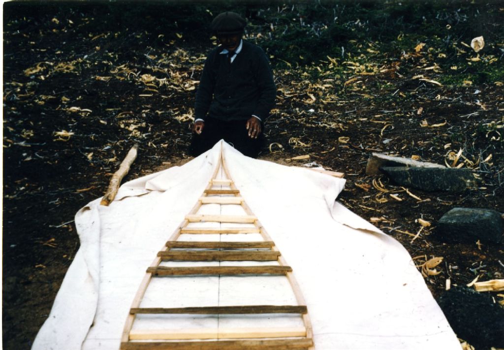 Fabrication d'un canot indien, 1949-1960, Archives nationales à Sept-Îles, Fonds Pauline Laurin, (09N,P60,S1,SS1,P20), Laurin, Pauline.