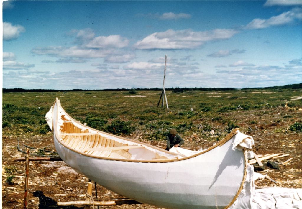 Fabrication d'un canot indien, 1949-1960, Archives nationales à Sept-Îles, Fonds Pauline Laurin, (09N,P60,S1,SS1,P21), Laurin, Pauline.
