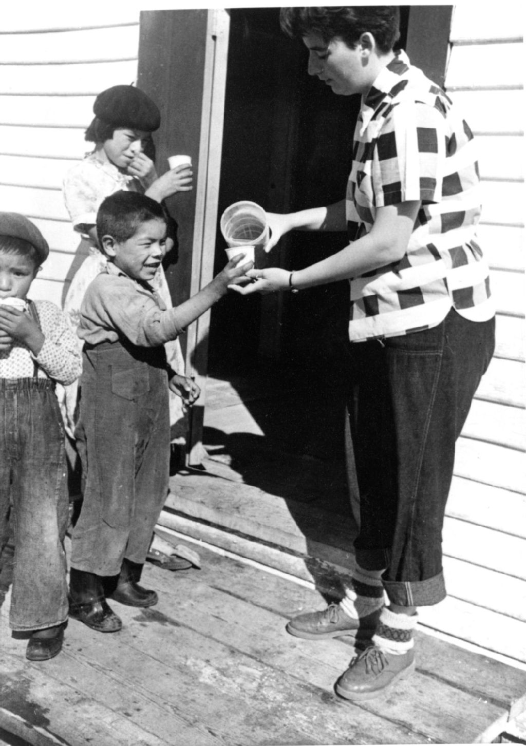 Christiane Dussault, aide-infirmière, distribue deux fois par jour le lait au chocolat à tous les enfants montagnais de la réserve de Mingan