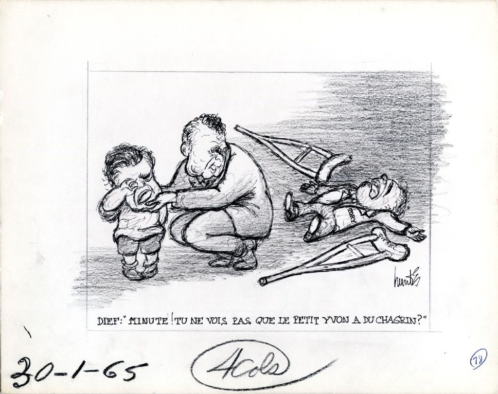 Dief: «Minute! Tu ne vois pas que le petit Yvon a du chagrin?», 30 janvier 1965, Archives nationales à Québec, Fonds Raoul Hunter, (03Q,P716,S1,P65-01-30), Raoul Hunter.