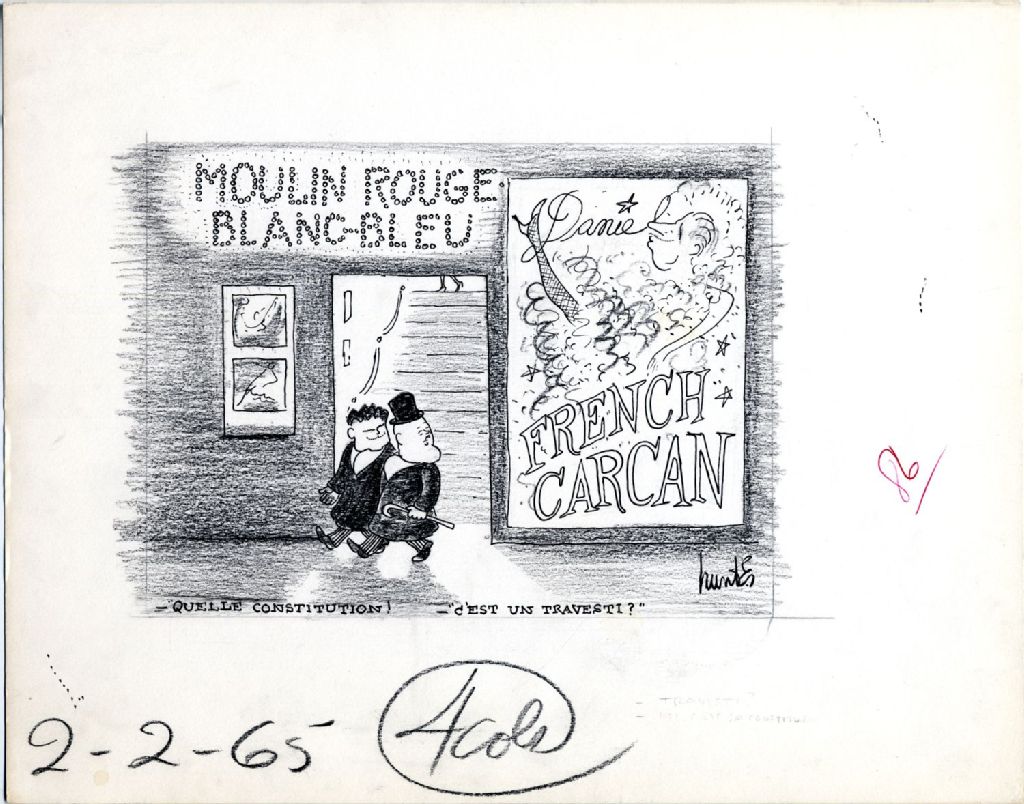 -«Quelle constitution!» -«C'est un travesti?», 2 février 1965, Archives nationales à Québec, Fonds Raoul Hunter, (03Q,P716,S1,P65-02-02), Raoul Hunter.