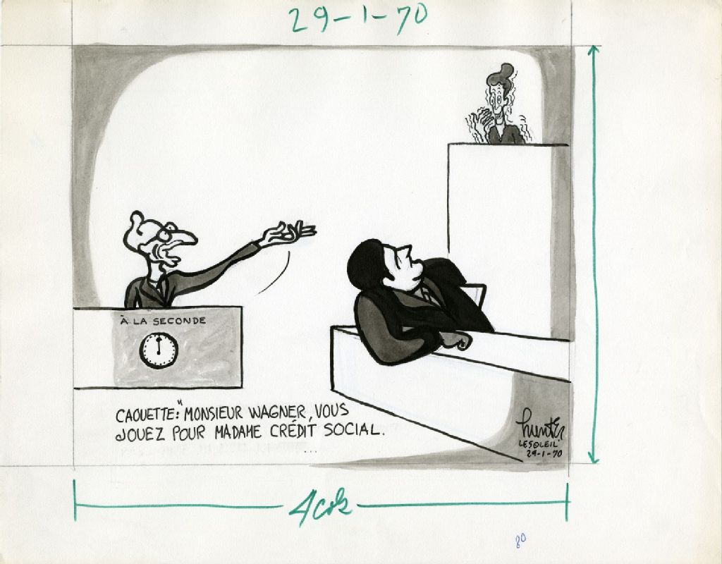 Caouette : «Monsieur Wagner, vous jouez pour madame Crédit social», 29 janvier 1970, Archives nationales à Québec, Fonds Raoul Hunter, (03Q,P716,S1,P70-01-29), Raoul Hunter.
