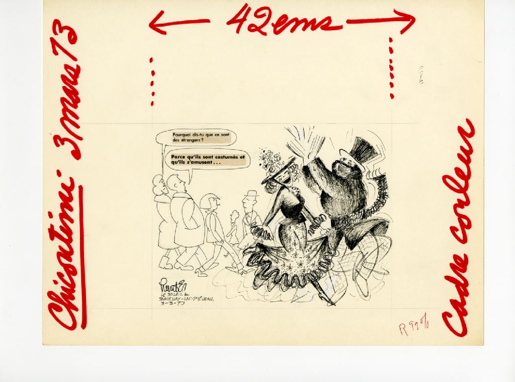 ''Pourquoi dis-tu que ce sont des étrangers?'' ''Parce que ce qu'ils sont costumés et qu'ils s'amusent...'', 03 mars 1973, Archives nationales à Québec, Fonds Raoul Hunter, (03Q,P716,S1,P73-03-03-1), Raoul Hunter.