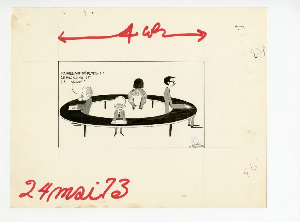 "Maintenant réglons-le problème de la langue!", 24 mai 1973, Archives nationales à Québec, Fonds Raoul Hunter, (03Q,P716,S1,P73-05-24), Raoul Hunter.