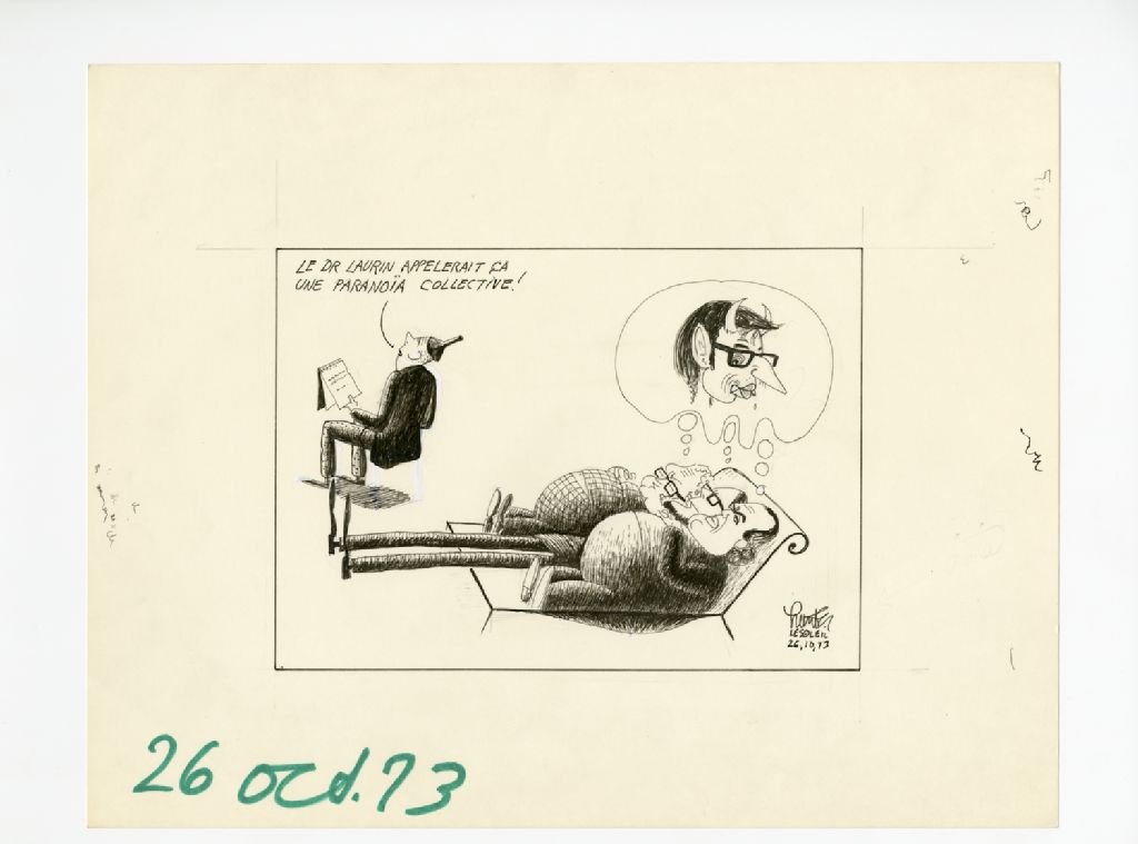 "Le Dr. Laurin appelerait ça une paranoia collective!", 26 octobre 1973, Archives nationales à Québec, Fonds Raoul Hunter, (03Q,P716,S1,P73-10-26), Raoul Hunter.