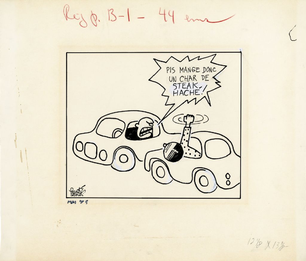 «Pis mange donc un char de steak haché!», Mai 1975, Archives nationales à Québec, Fonds Raoul Hunter, (03Q,P716,S1,P75-05-04), Raoul Hunter.