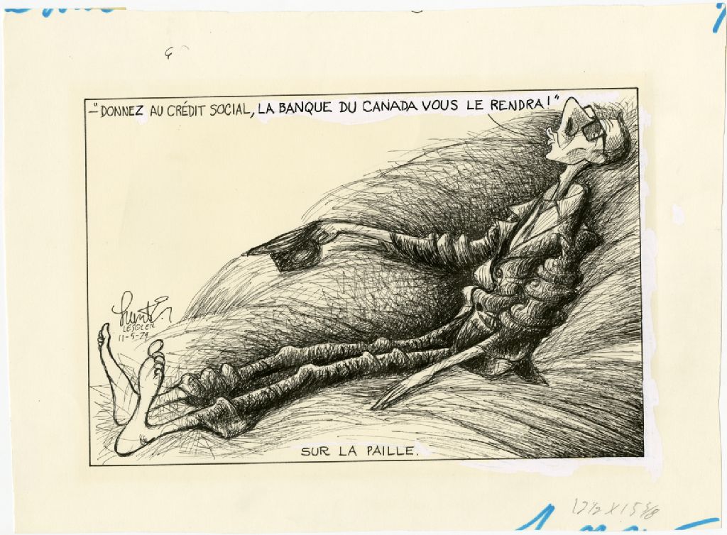 Sur la paille. «Donnez au Crédit social, la Banque du Canada vous le rendra!»