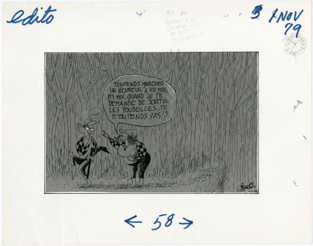 «T'entends marcher un écureuil à 100 pieds, pis moi, quand je te demande de sortir les poubelles, tu m'entends pas!!!» «Chut!»