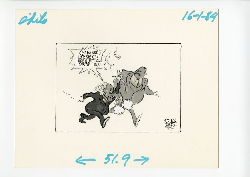 "C'est pas une loterie, c'est une élection partielle!", 16 janvier 1984, Archives nationales à Québec, Fonds Raoul Hunter, (03Q,P716,S1,P84-01-16), Raoul Hunter.