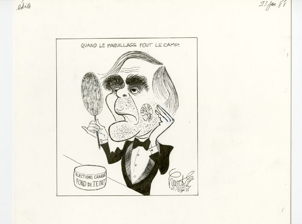 Quand le maquillage fout le camp., 23 janvier 1988, Archives nationales à Québec, Fonds Raoul Hunter, (03Q,P716,S1,P88-01-23), Raoul Hunter.