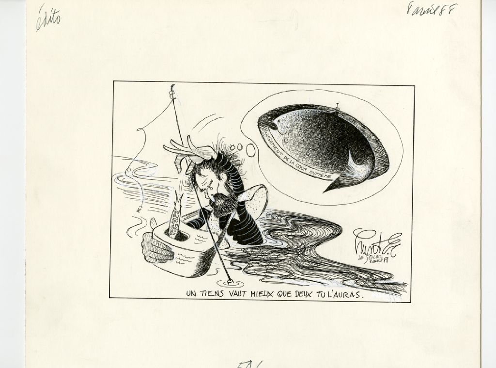 Un tiens vaut mieux que deux tu l'auras., 08 avril 1988, Archives nationales à Québec, Fonds Raoul Hunter, (03Q,P716,S1,P88-04-08), Raoul Hunter.