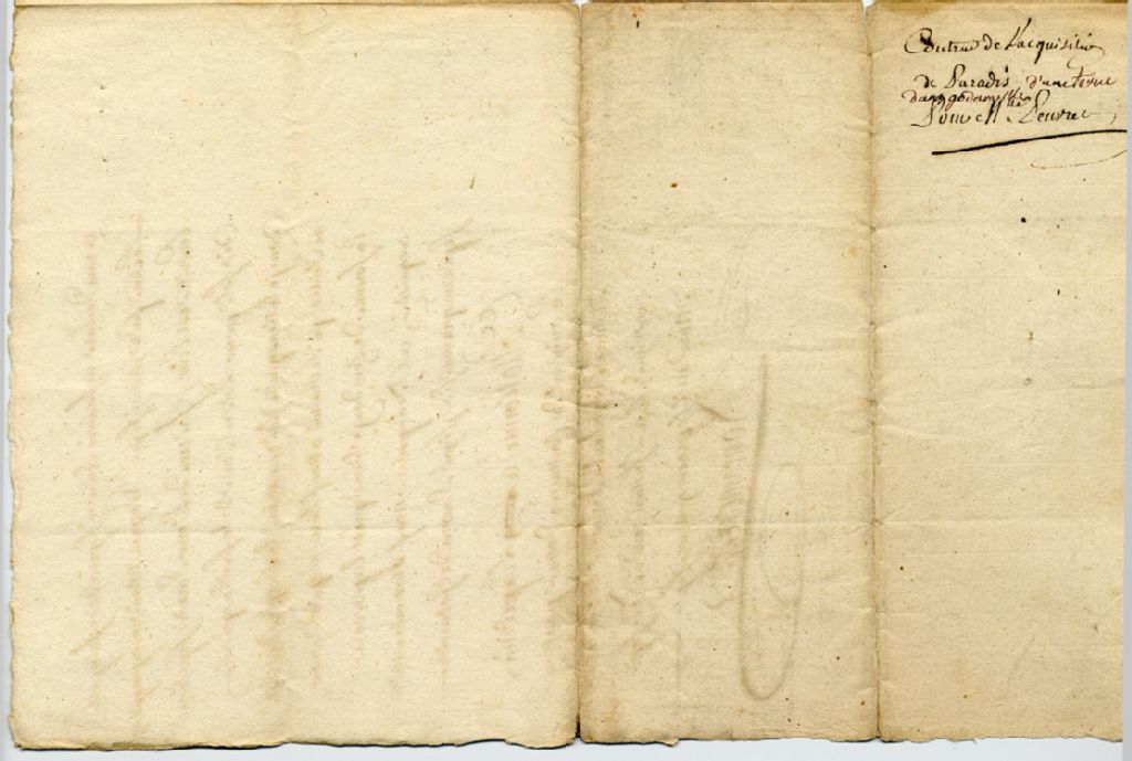 Copie de l'acte de vente passé devant Boucault de Godefus, notaire royal, d'une terre en la Seigneurie de Saint-Jean-Baptiste, par Joseph Gauvin, habitant de l'Ancienne Lorette, Seigneurie de Gaudarville, à Pierre Paradis, le 9 novembre 1746, 7 mars 1747, Archives nationales à Québec, Collection Pierre-Paul Côté, (03Q,P745,P28).