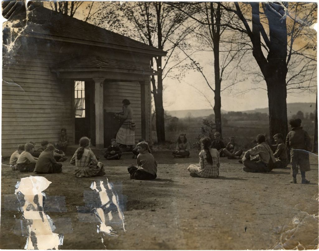 Enfants dans la cour d'école, [Vers 1920], Archives nationales à Québec, Collection Julienne Sioui, (03Q,P907,P22), Photographe non identifié.