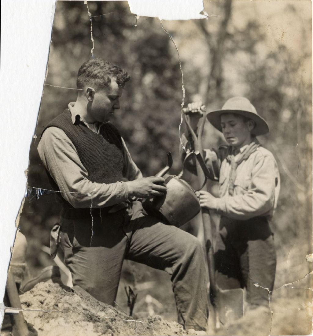 Le Père Athol Murray dans l’ossuaire huron, [Vers 1920], Archives nationales à Québec, Collection Julienne Sioui, (03Q,P907,P51), Photographe non identifié.