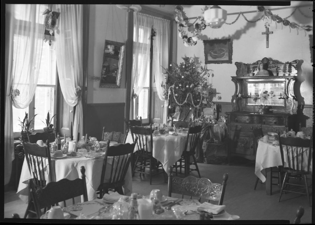 Maison-Mère - Salle à manger, [Vers 1950], Archives nationales à Québec, Fonds Les Soeurs de la Charité de Québec, (03Q,P910,S1,D1,P24), Photographe non identifié.