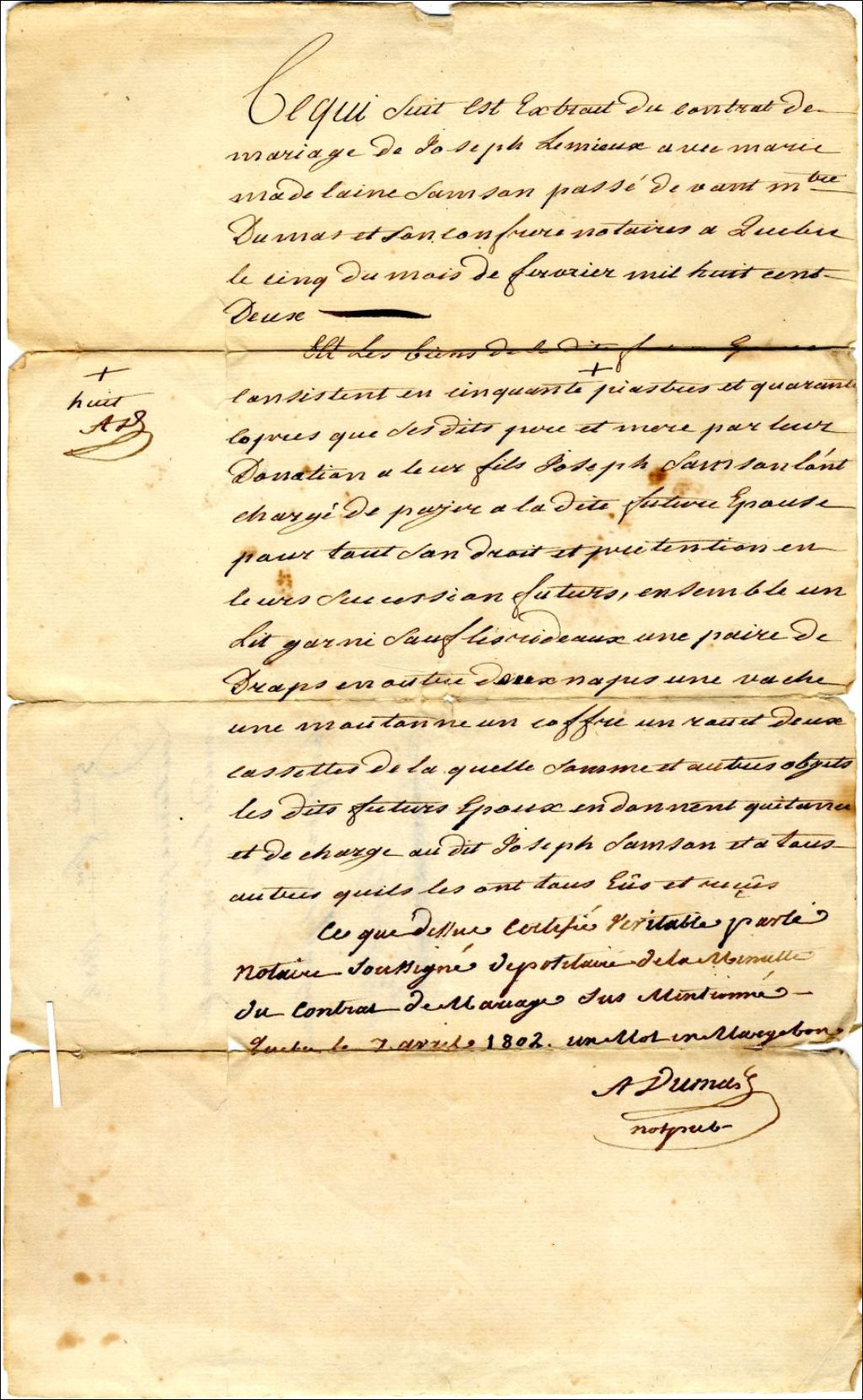 Quittance de Marie Madeleine Samson à son frère Joseph Samson, 1802, Archives nationales à Québec, Fonds Famille Gabriel Samson, (03Q,P923,D19,P2).