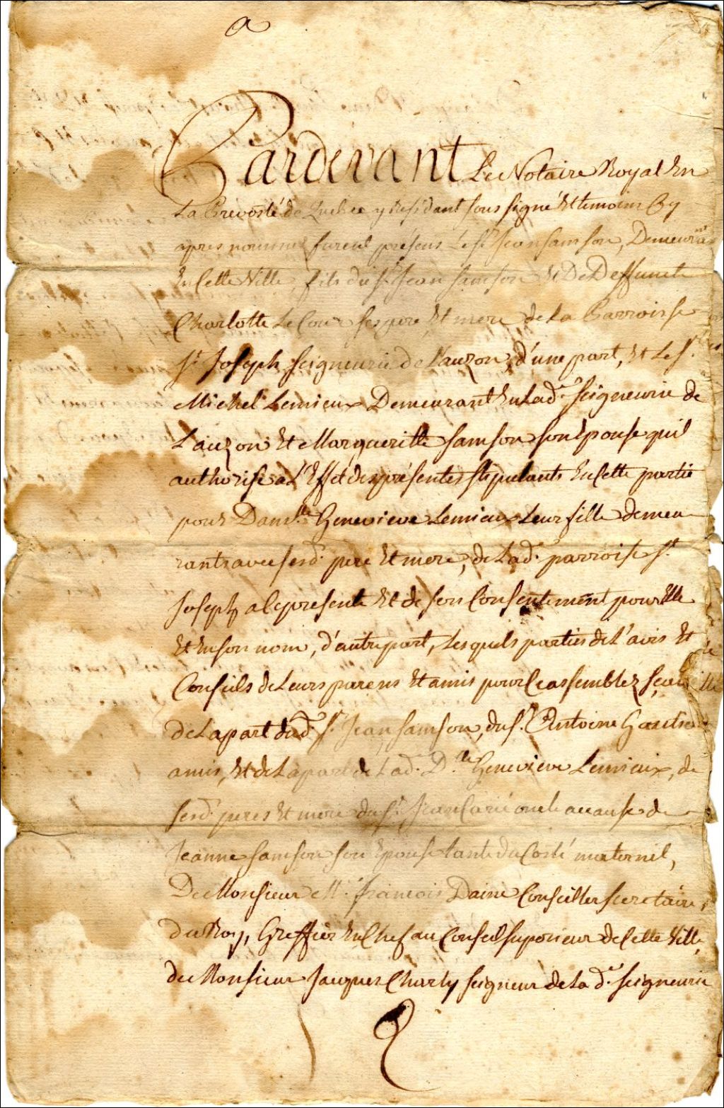 - Contrat de mariage entre Jean Samson et Geneviève Lemieux