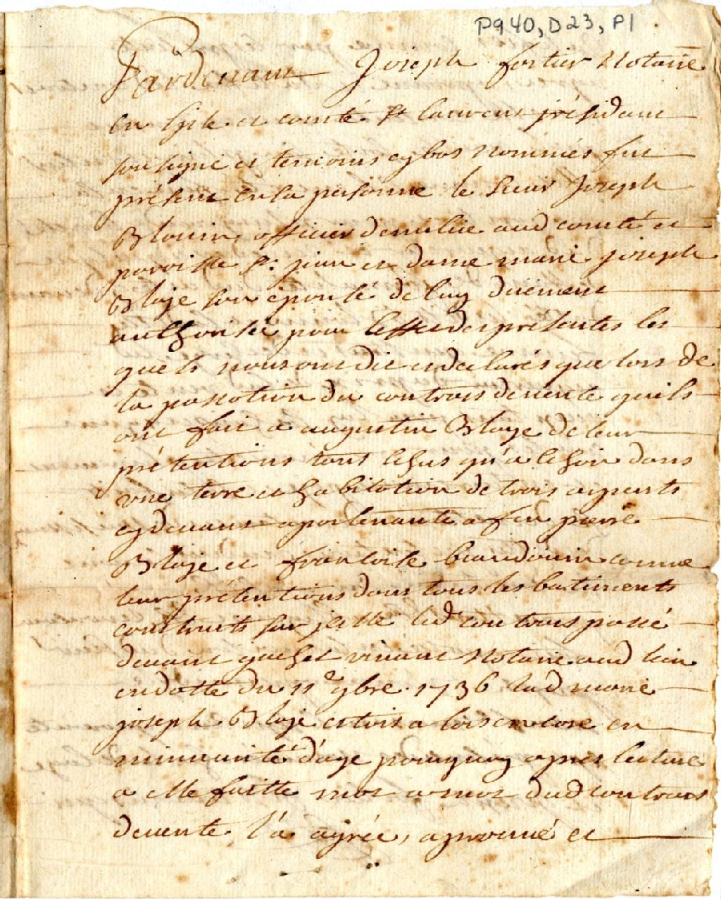- Ratification d'un contrat de vente par Marie Joseph Blaye devant le notaire Joseph Fortier