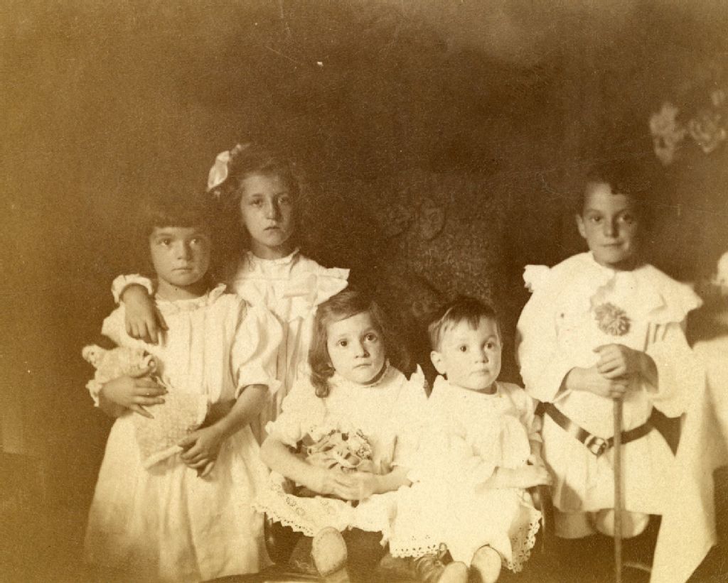 Rita Clément, Adrienne Brault, Alice, Henri et Hubert Clément, 13 septembre 1908, Archives nationales à Montréal, Fonds Béatrice Clément, (06M,P43,S4,P236), Clément, Béatrice.