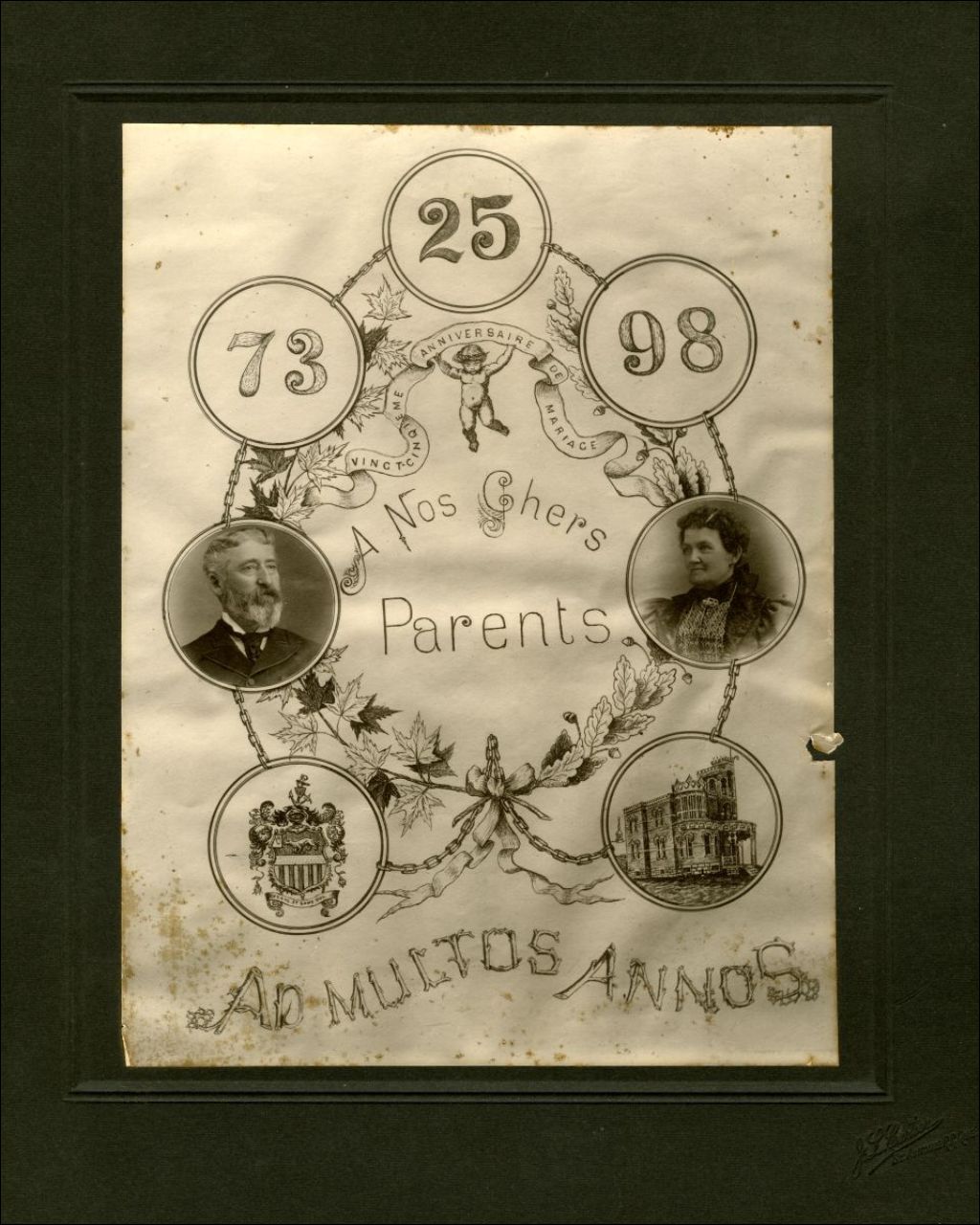Photo-montage réalisé à l'occasion du vingt-cinquième anniversaire de mariage de Louis-Joseph Cartier et de son épouse